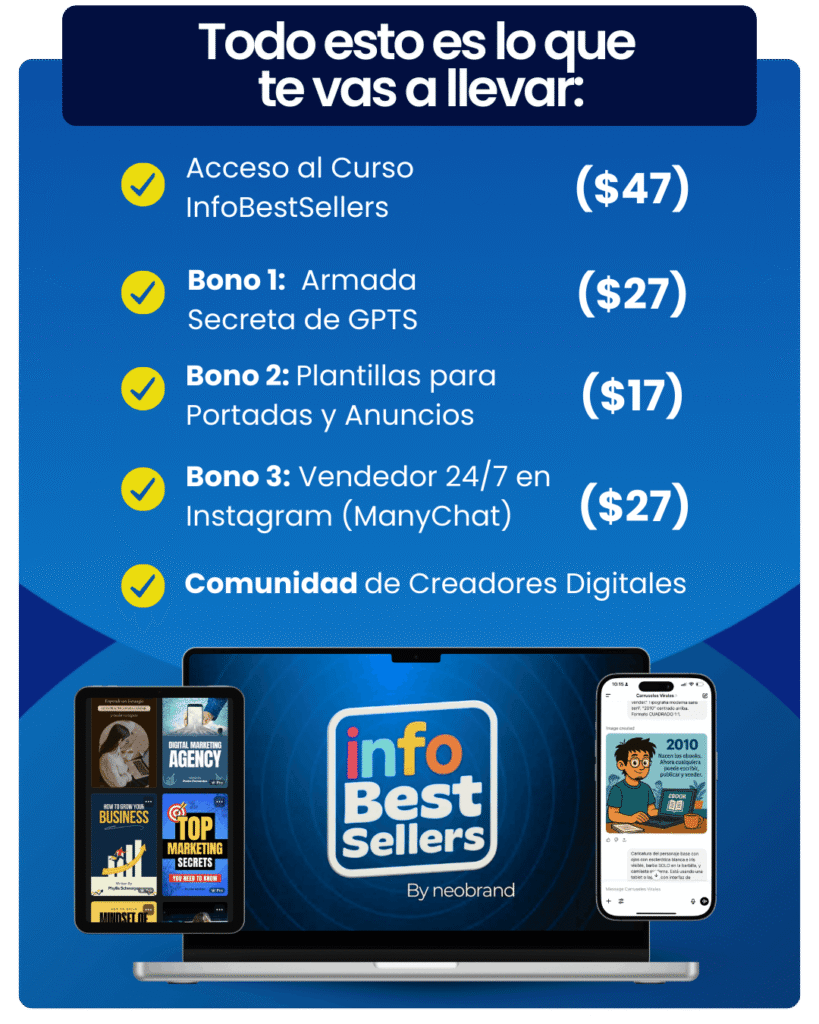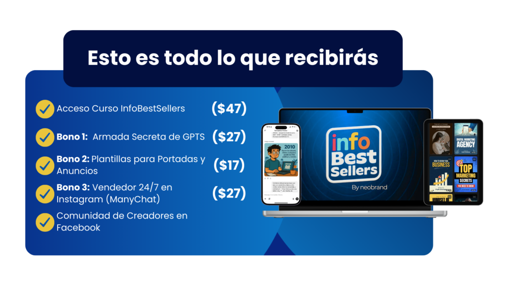 ¡Deja de soñar con un negocio digital y comienza a hacerlo realidad! No importa si eres principiante o un experto, este curso te da la guía que necesitas para crear tu propio producto digital en menos de 15 días y comenzar a venderlo desde el primer mes.